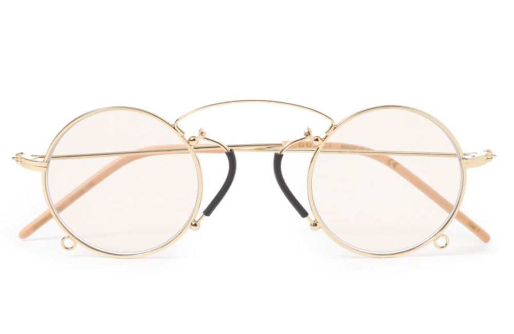 Siêu phẩm cuối cùng đến từ nhà mốt Gucci mang phong cách cực kỳ độc đáo “ pince-nez” có nghĩa là “véo mũi” trong tiếng Anh. Phong cách này có từ thế kỷ 15, thiết kế được ra mắt do nhà mẫu muốn tìm cách để giữ kính mà không cần tai nghe. Chiếc kính này được chế tác trong khung kim loại vàng với miếng Pince-nez màu đen.